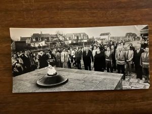 C’est le 13 juillet 1947 que le Président de la République Vincent Auriol posa la première pierre du Tertre des Massacres en hommage aux 86 civils fusilles le 1 avril 1944 par des troupes de la SS …avec , à ses côtés , Francois Mitterrand alors Ministre des anciens combattants et victimes de guerre qui …