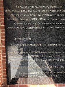 Cette semaine, enfin, a vu l’annonce au LAM de la prochaine exposition en 2019 de la collection d’Alberto Giacometti, le LAM où j’ai pu noter que, sur la plaque de marbre noire commémorative de son inauguration le 21 mai 1983, j’étais le seul « survivant ».
